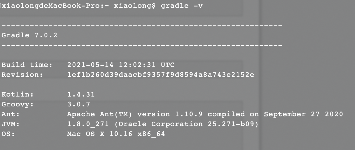 gradle -v,来查看gradle版本,如果正常打印版本,说明配置成功。